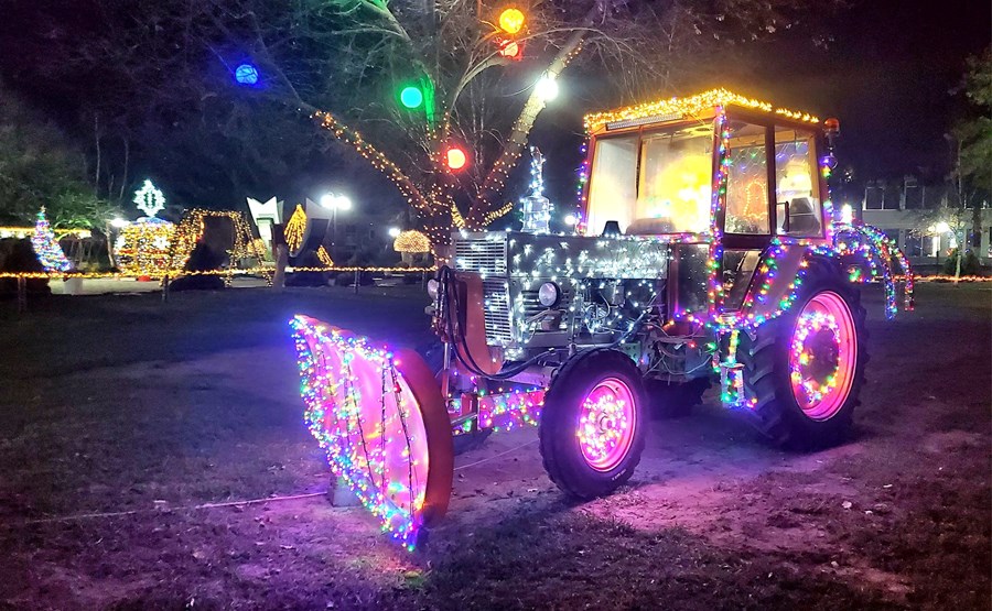 Село Сандрово посреща коледните празници с впечатляваща празнична декорация, която превръща центъра на населеното място в истинска зимна приказка. Тракторът на кметството, който се е превърнал вече в традиционен символ на празничната украса, отново грейна в пъстроцветни светлини.