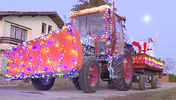 Коледният трактор в Сандрово разнася подаръци по домовете днес