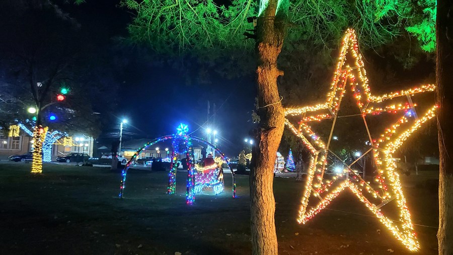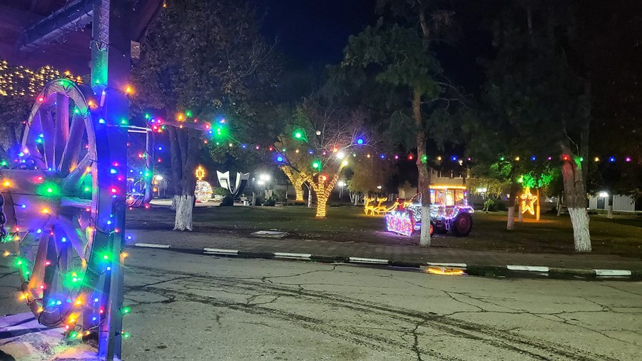 Една от най-популярните атракции е коледният трактор. Селскостопанската машина е украсена с множество разноцветни светещи лампички, камбанки и звезди. Тя е паркирана в зелените площи на площада, който е изпълнен с арки и светлини.