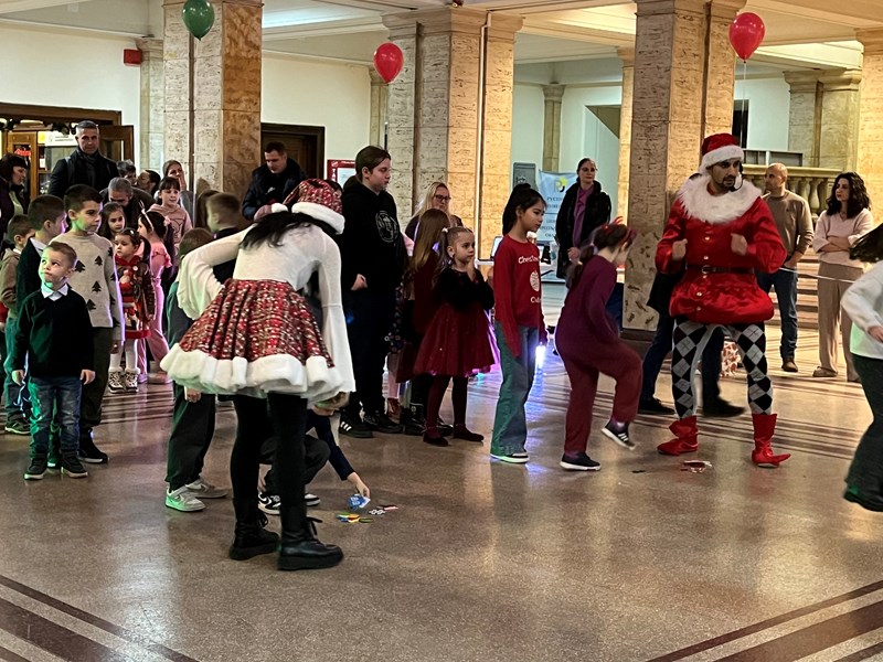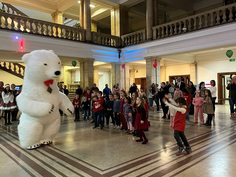 Малчуганите получиха лакомства и танцуваха с огромен мечок във фоайето