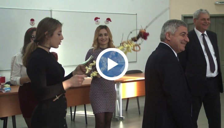 Те бяха поздравени от ректора проф. д-р Велизара Пенчева, която им пожела весело изкраване на празниците. За коледно настроение се погрижиха чуждестранни студенти от различни страни, които влязоха в ролята на сурвакари.