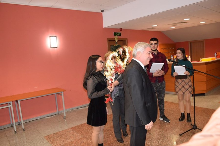 Доц. д-р Велислава Донева разказа за традициите на Бъдни вечер и Коледа, за посрещането на Новата Година и коледуването. Студентите от подготвителния курс изработиха сурвакница, с която сурвакаха проф. Белоев и проф. Мартев. Някой от студентите бяха отличени с грамоти, във връзка с помощта, която оказват на дирекция „Чуждестранни студенти“.