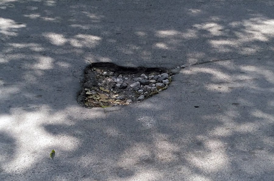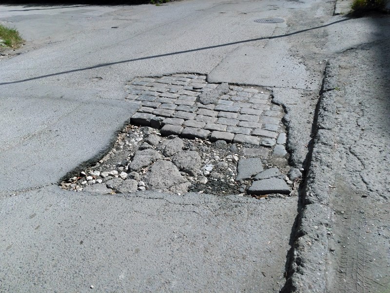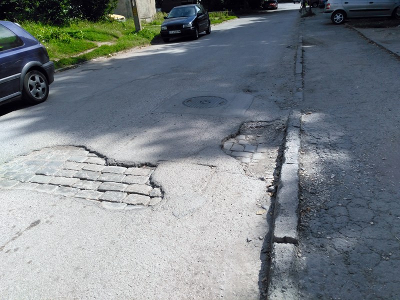 От години чакаме ремонт на дупките, които виждате на снимките. Някои съкварталци не издържаха и иззеха функциите на общинската ни управа, като запълниха част от дупките с бетон на едно място и с асфалт на друго.