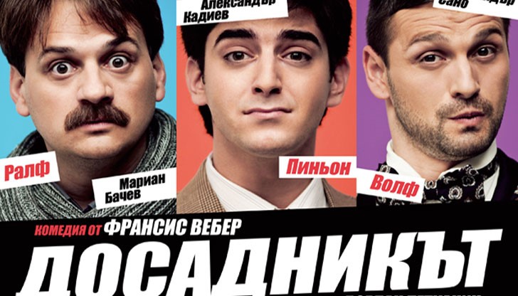 Мариан Бачев, Александър Кадиев, Александър Сано, Петьо Петков - Шайбата, Александър Дойнов и Михаил Петков са част от екипа на театър "Мелпомена" и Драматичен теaтър "Боян Дановски" Перник, които ще представят невероятната френска комедия "Досадникът" от Франсис Вебер в Русе.
