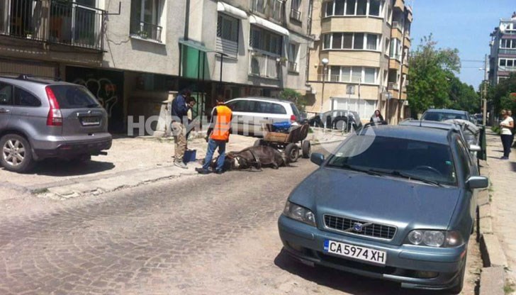 Хора от квартала се притичали да помогнат на животното, след като видели как двамата собственици се опитали да го изправят със сила.