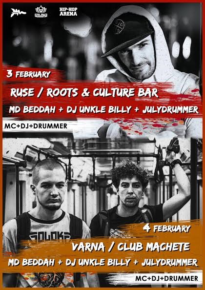 Хип-хоп изпълнителят MD Beddah, DJ Unkle Billy и техния барабанист Julydrummer са подготвили уникално шоу от хип-хоп MC + DJ + барабанист на живо от 21:00 часа.