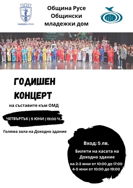 Русенската общественост ще има възможност да се наслади на изпълненията на талантливи деца и младежи от града на 5 юни. Община Русе и Общинският младежки дом организират традиционния годишен концерт на съставите, който ще представи наученото през творческия сезон.