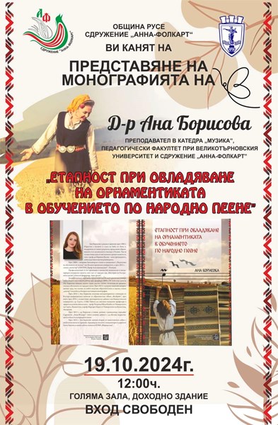 Русе ще бъде домакин на вълнуващо културно събитие следващият уикенд, когато талантливата народна певица Ана Борисова ще зарадва публиката с емоционален концерт и представяне на своя научен труд.