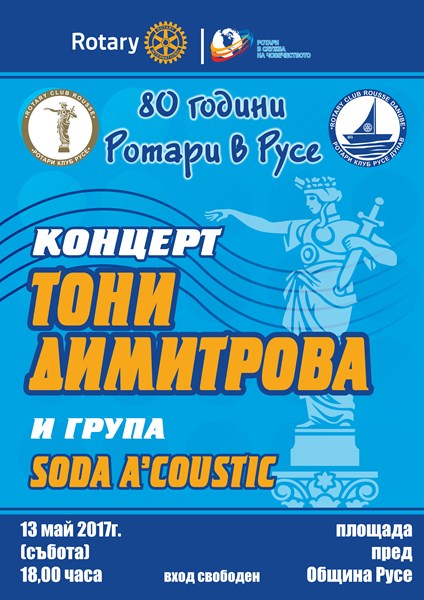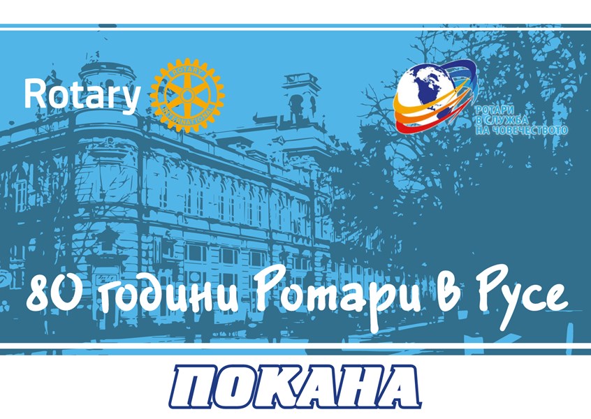 Ротари клуб "Русе" и Ротари клуб "Русе-Дунав" имат удоволствието да Ви поканят да станете част от тържествата, посветени на 80 години Ротари в Русе.