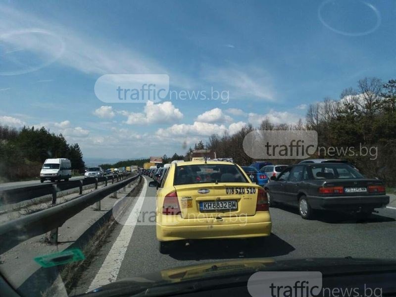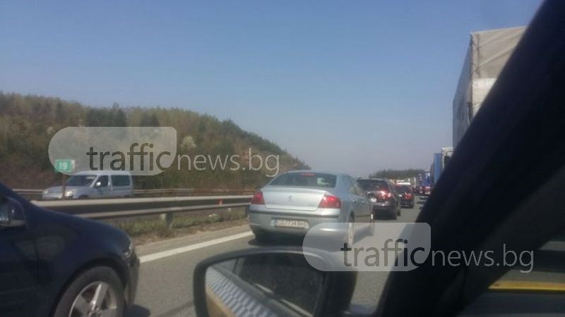 Близо 20-километрова колона от коли се образува на магистрала „Тракия” между Пловдив и София.