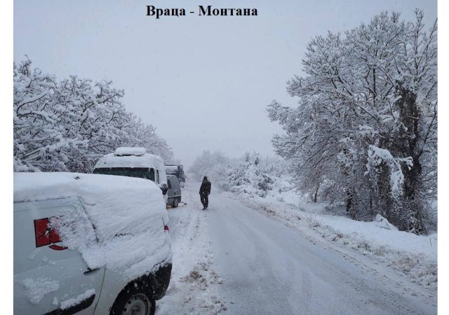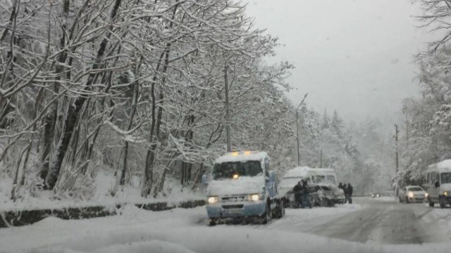 Снегът предизвика проблеми с движението на редица места по пътищата.