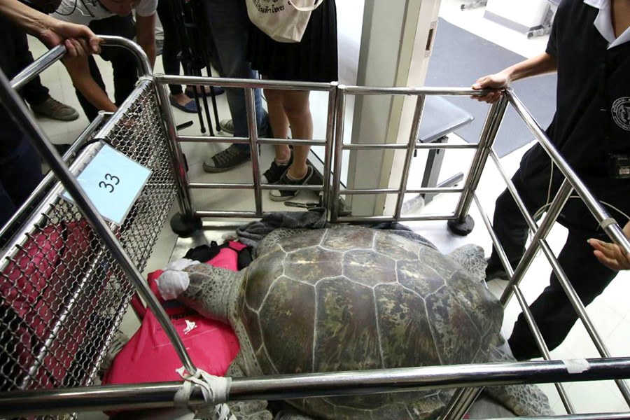 В Тайланд извадиха 915 монети от стомаха на женска костенурка.
