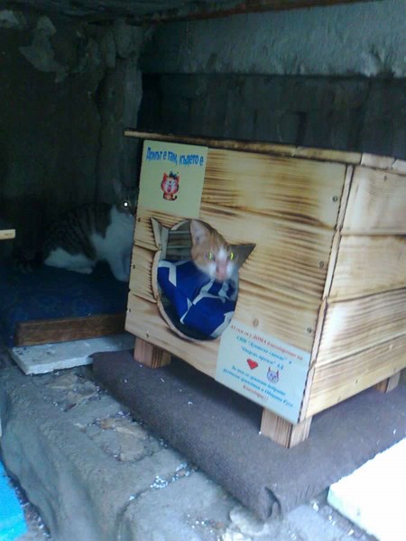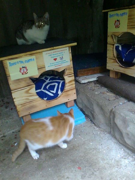 ×Браво на децата: Като става въпрос за котешки къщички да питам: Няма ли да мине някой от общината или от чистотата и да вземат, че да изчистят смрадливите мокри и мръсни котешки кашони постлани с парцали и черги. Това го няма никъде по света, това е български патент.