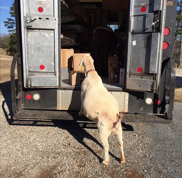 Козичка от приют за малтретирани животни в град Ноксвил в щата Тенеси се влюби безвъзвратно в шофьор на куриерска фирма, като всеки ден го чака да слезе от буса, съобщава агенция ЮПИ.