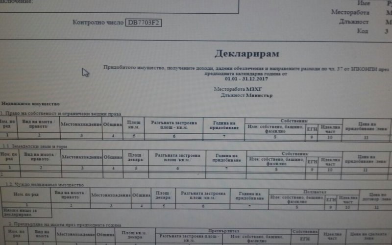Това стана ясно, след като в. "Сега" изисква и получава от земеделското министерство копие на подадената декларация. Интересното е, че то е заверено с печат "Вярно с оригинала", поставен от КПКОНПИ вчера, с което комисията на практика потвърждава, че информацията на сайта е невярна. Това за пореден път поставя под въпрос ефективността на контрола върху имуществото на висшите лица и достоверността на данните, публично предоставяни от антикорупционната комисия.
