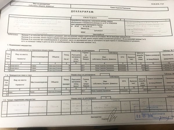 Декларацията на земеделския министър Румен Порожанов, качена на сайта на Комисията за противодействие на корупцията и отнемане на незаконно придобитото имущество (КПКОНПИ), няма нищо общо с документа, който той е подал.