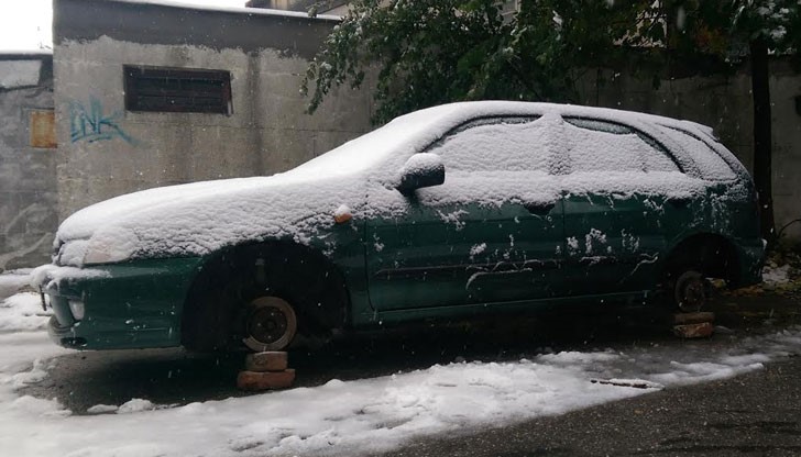 Здравейте, ето реална снимка на нисана с откраднатите гуми. Много кофти, но показвайте такива неща. Нека им се върне тъпкано на извършителите. Сган...