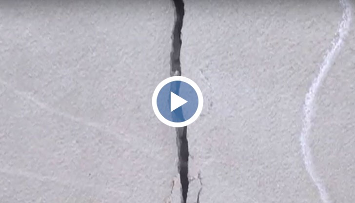 Става дума за вертикални пукнатини от долу до горе от двете страни на подлеза, който води до стълбите за спортната зала.