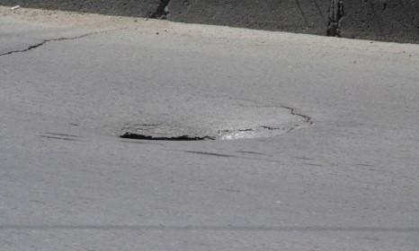 Опасна дупка се отвори на кръговото кръстовище в централната част на Русе.
