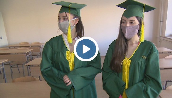 В училището имат традиция абитуриентите да обличат тоги при дипломирането си, но преди да ги облекат – те трябва да се дезинфектират, информира bTV.