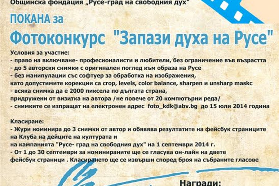 Крайният срок за участие във Фотоконкурса "Запази духа на Русе" се удължава до 31 юли 2014 г.