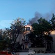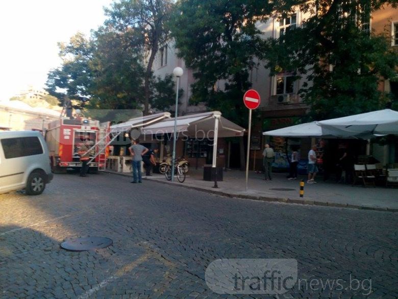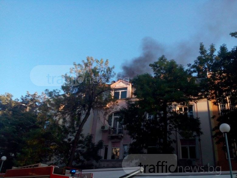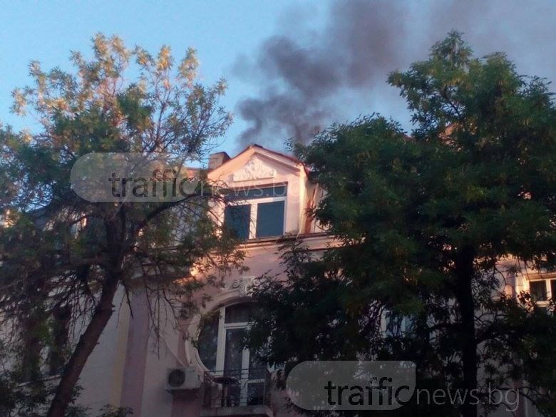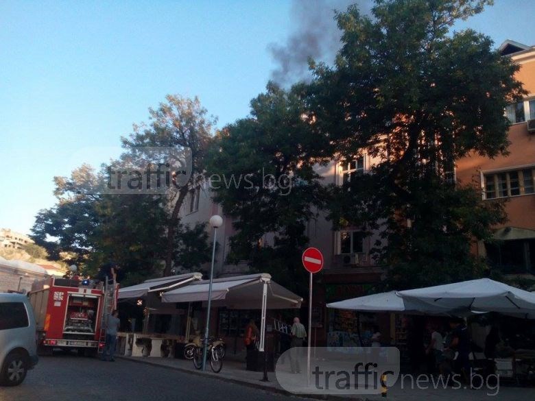Над улицата се стеле дим, а преди минути на мястото пристигнали 3 пожарни автомобила. Огнеборците вече са на покрива на сградата и гасят.