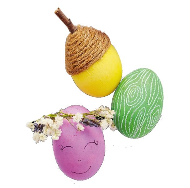 Освен класическите направете и няколко по-странни, които няма да влязат в употреба за ритуала с чукането, но безспорно ще привлекат вниманието. Например с помощта на обикновена връв направете яйце като жълъд, а друго оформете като лице на момиче с венец на главата.