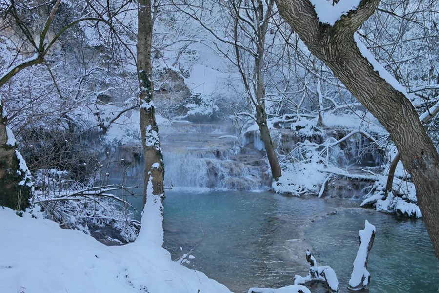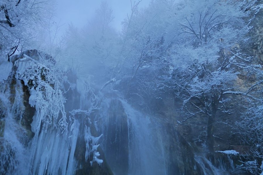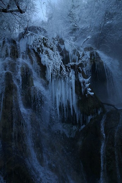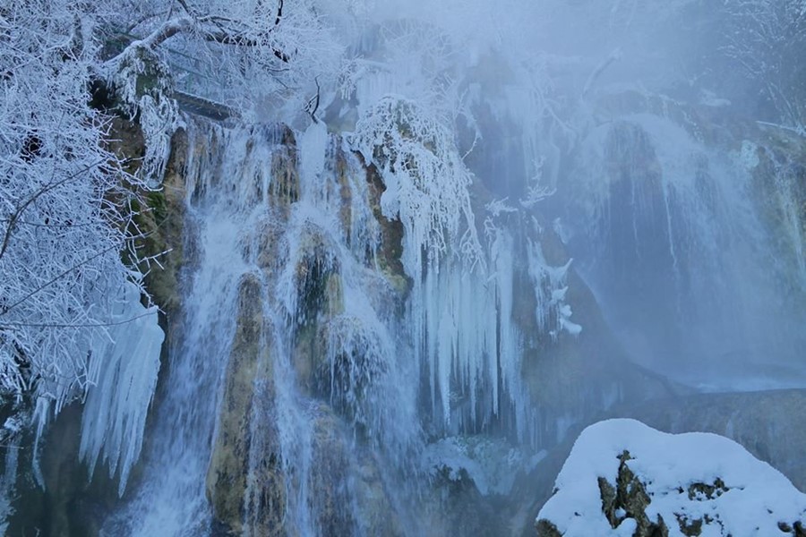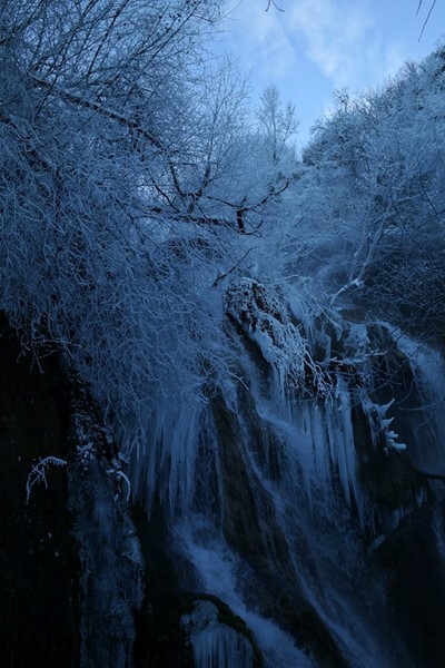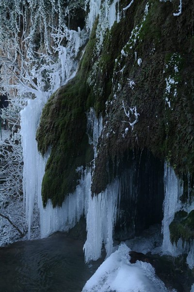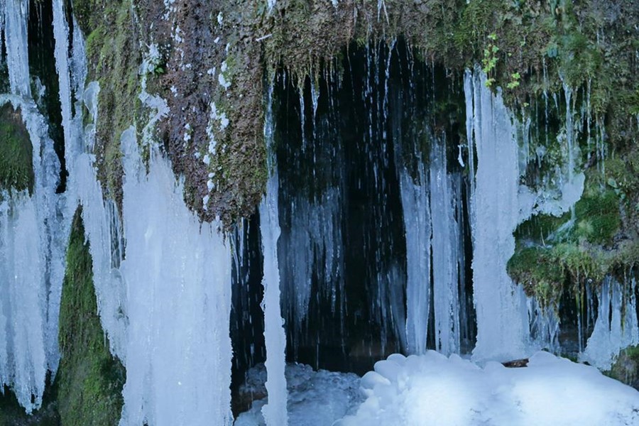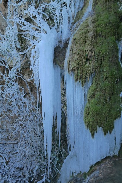 Красивите Крушунски водопади край град Летница, Ловешко, посрещнаха новата година замръзнали.