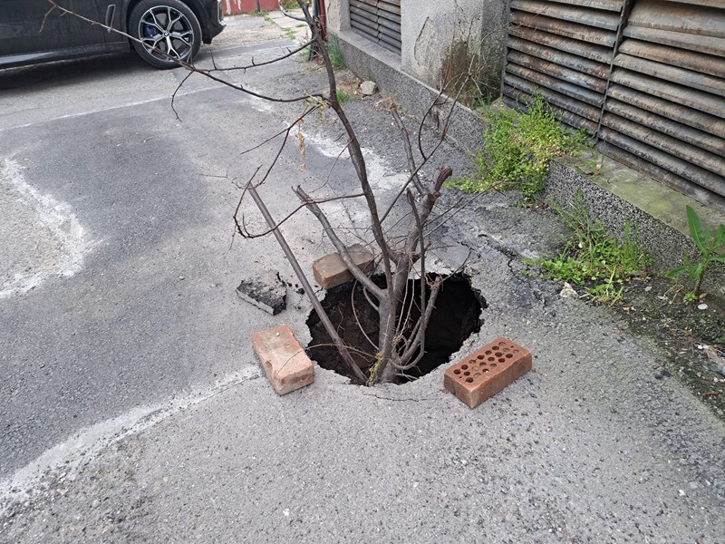 "Това е последица от три ремонта преди месец. Намира се до трафопоста при бл. Българска роза. Срути се пред мен, ако беше дете щеше да пропадне. На това място паркират коли".