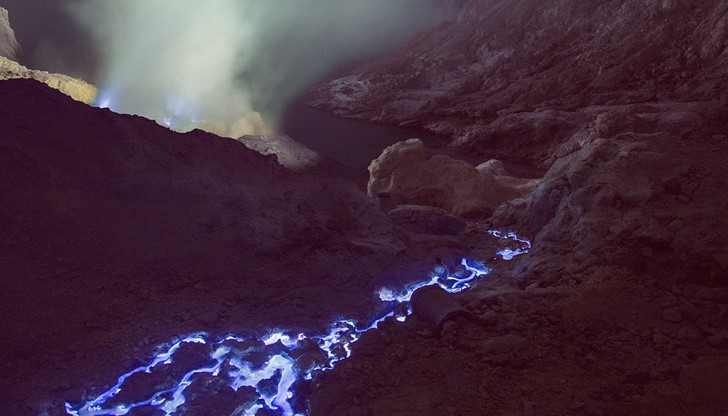 При едно посещение на вулканите в района на Бромо-Тенгер-Семеру в източна Ява фотографът Рюбен Уу от САЩ заснема необичайната гледка на разтопена сяра, която тече в основата на един от кратерите.