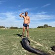 Янков позира до гигантската риба, а от публикацията му става ясно, че случката се е разиграла в района на Екстремадура.