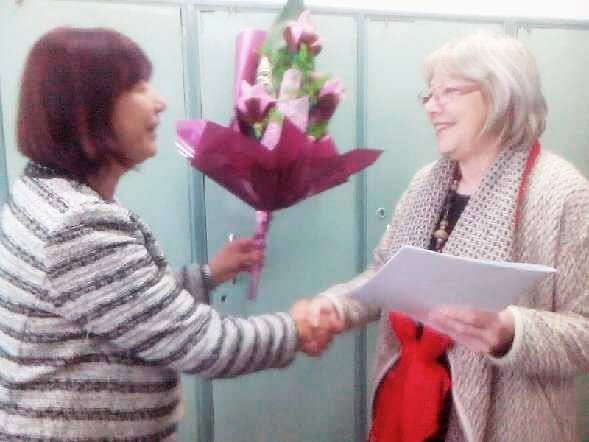 Г-жа Гицка Харизанова, председател на Регионален Синдикат „Образование” към СРС на КТ”Подкрепа” Русе връчи грамотите.