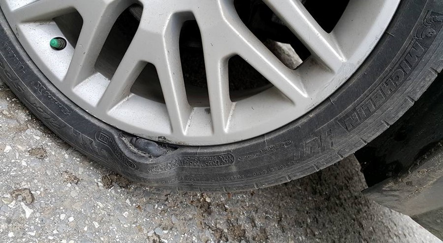 Голяма част от пътищата в Северна България са осеяни в дупки и шофьорите са принудени да отделят допълнителни средства както за по-скъпа винетка, така и за ремонт на автомобилите си. Въпреки своите неволи, г-н Великов е запазил своето чувство за хумор и е направил своеобразна реклама на своите гуми.