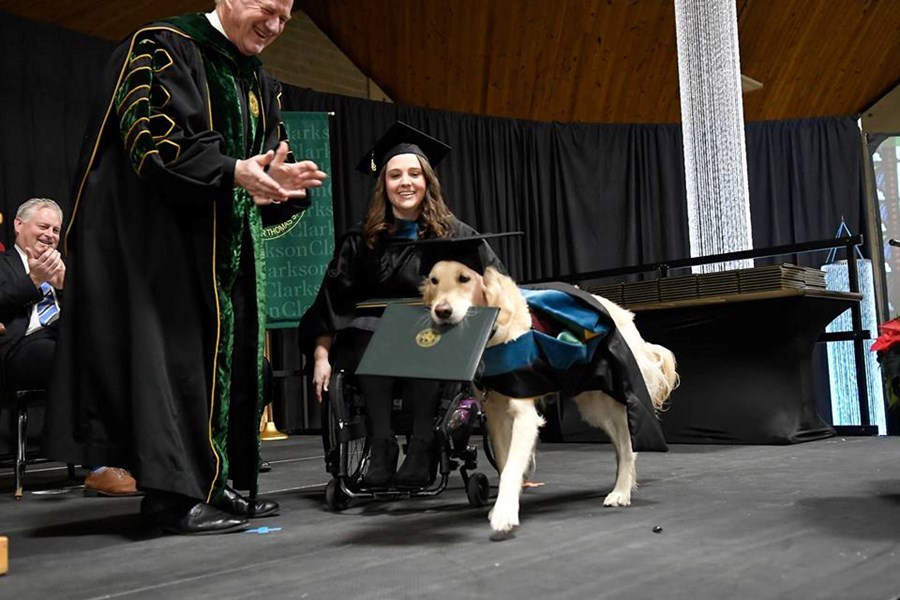 Голдън ретривърът Грифин получи почетна диплома от американски университет, защото е придружавал собственичката си на лекции и упражнения, докато тя стане магистър по професионални заболявания, съобщи Асошиейтед прес.