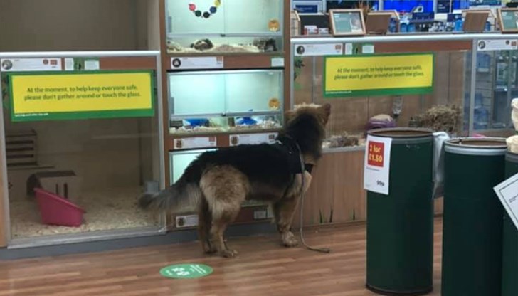 Куче влиза в зоомагазин, за да се любува на морски свинчета
