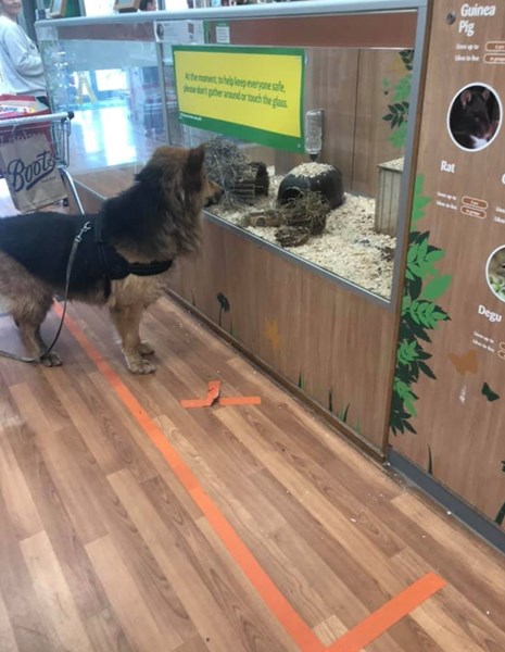 Животното внезапно се е появило в магазина "Петс ет хоум" в Бишъпбригс, Глазгоу, водено от желанието да открие някое морско свинче и да му се полюбува. Притеснената стопанка е последвала питомката си, обяснявайки, че тя е "добро момиче", което просто обича да "зяпа" морски свинчета.