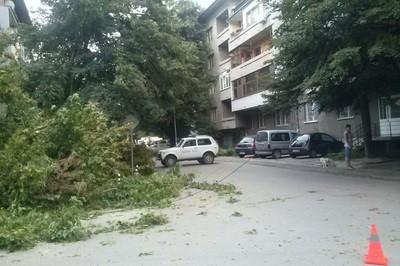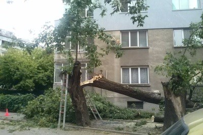Вчерашният вятър в Русе събори дърво на ул.”Николай Здравков”. От тежестта му падат клони и от съседно на него дърво. Смаяните очевидци разказват, че се е чуло силно пращене, след което и трясък. Хората веднага алармирали на телефон 112. Екипи на Първа РСПБЗН-Русе и Група Спасителна Дейност при ОУПБЗН-Русе веднага били пратени на място.