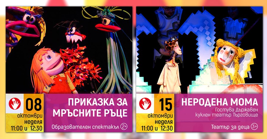 Две поредни седмици на русенската куклена сцена ще гостуват спектакли от Куклен театър Търговище. Тази неделя, 8 октомври, те ще представят образователния спектакъл „Супер д-р Димитров или Приказка за мръсните ръце“. Следващата седмица, на 15 октомври, русенската публика ще може да гледа едно от новите заглавия на гостите – „Неродена мома“, чийто режисьор е Деница Дончева, актриса и режисьор в Куклен театър – Русе.
