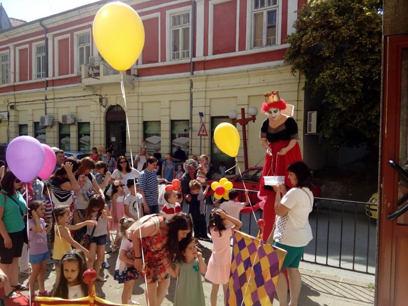 За Деня на детето домакините подариха безплатен спектакъл - "Трите прасенца", а преди началото му посрещнаха малчуганите с балони, бонбони, клоун на кокили и огромни сапунени мехури.