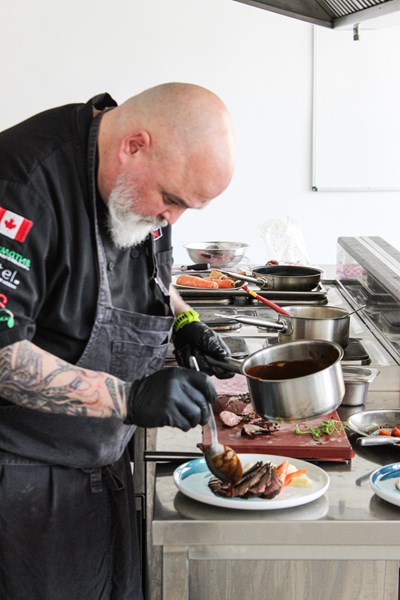 Кулминацията на демонстрацията дойде с основното ястие, представено от самия шеф Хю Бутен – патешко магре, приготвено по технологията „су-вид" с шоколад и кафе, съчетано с пюре от пащърнак, печен морков и завършено със сос от шоколад и кафе. Необичайната комбинация от съставки показа как класическите техники могат да бъдат преосмислени в съвременен контекст.