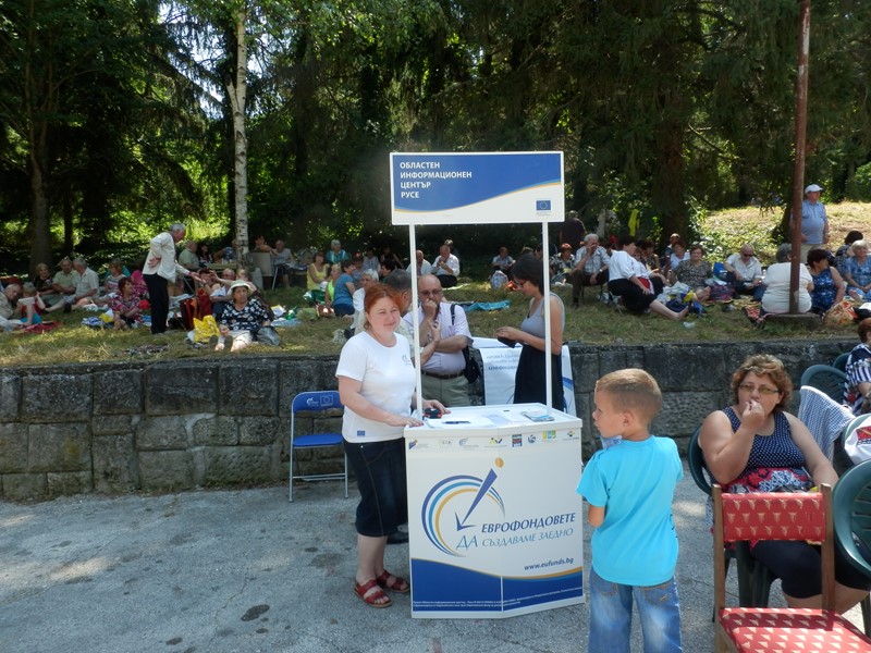 Областният информационен център-Русе представи възможностите за финансиране на проекти чрез ЕСИФ в изнесена приемна в Лесопарка „Липник“ в рамките на фолклорния фестивал „Сцена под липите“.