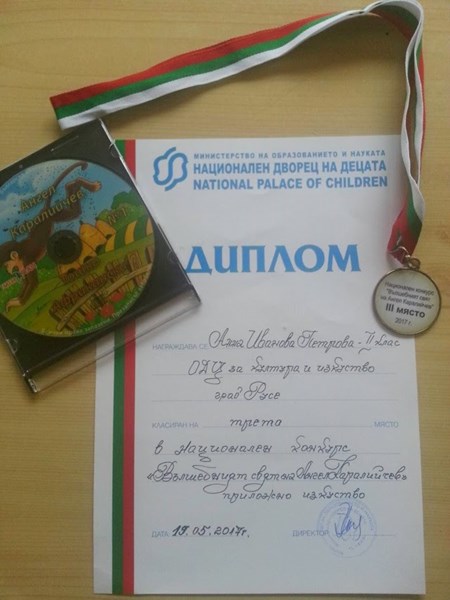 На провелия се X Национален конкурс за детска рисунка „Под дъгата на детството“ в гр. Сандански, Петя Димитрова бе класирана на първо място в първа възрастова група. Втора награда получи Виктория Генчева в раздел „Приложно изкуство“ от IX Национален конкурс „Мадарският конник – символ на историческото минало и европейското бъдеще на България“, гр. Шумен. През май 2017 г., на Анна Петрова бе присъдено трето място в раздел „Приложно изкуство“ от Национален конкурс „Вълшебният свят на Ангел Каралийчев“, гр. София. Поощрение получи Кристен Тодорова на 15 год. от XVII Международен пленер „Традиция, екология, творчество“, гр. Пловдив. През май, Етнографски музей на открито „Етър“ присъди диплом за най-масово участие на Школата по изобразително изкуства в Национален конкурс „Бостанско плашило“ в гр. Габрово.