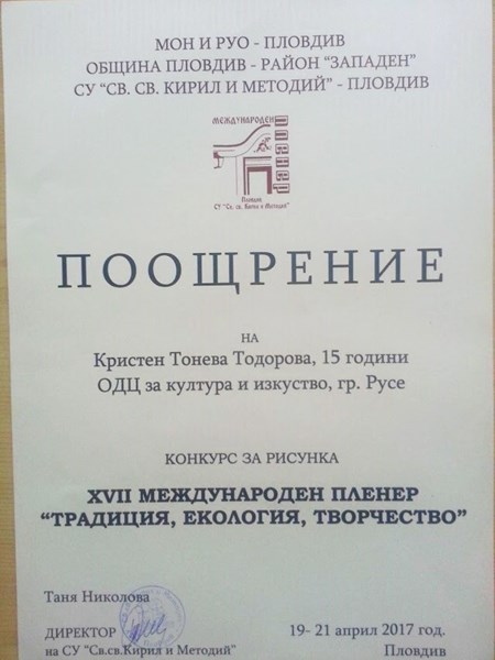 С много награди приключва творчески сезон 2016-2017 г. на Школата по изобразителни изкуства към Общински детски център за култура и изкуство с ръководител Маргарита Хрисандова.