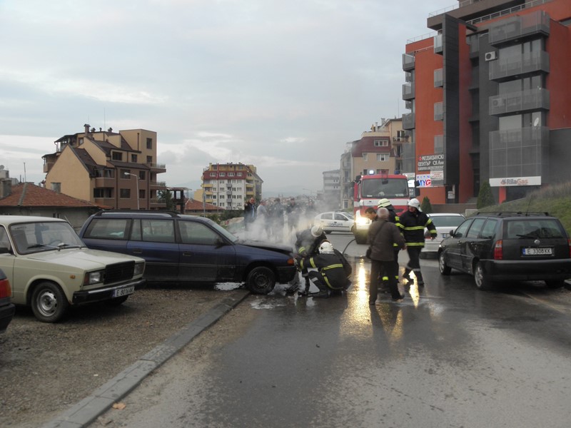 Към 7.20 часа Николай Д. от Благоевград паркирала възпламенилия се автомобил на паркинга пред поликлиниката, след което се качва до кабинета на личния си лекар.