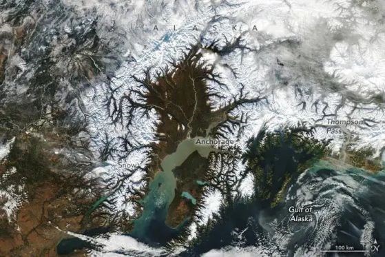 Анкъридж регистрира най-снежния си ноември от началото на воденето на отчети през 1953 г. - и достигна тази граница малко след средата на месеца. Освен това близкият планински проход се доближи до националния рекорд за 24-часов снеговалеж, пише Snowpocalypse Now: Anchorage Smashes Snowfall Records, NASA Earth Observatory, цитирани от nauka.offnews.bg