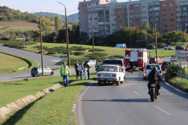 Двама души са пострадали леко при верижна катастрофа, случила се днес около 16:40 часа на кръговото кръстовище при слизането от път Е-79 към квартал "Струмско" в Благоевград. Инцидентът е станал, когато автомобил марка "Лада" се е ударил в задната част на спиращ на светофар лек автомобил "Мерцедес Виваро".