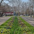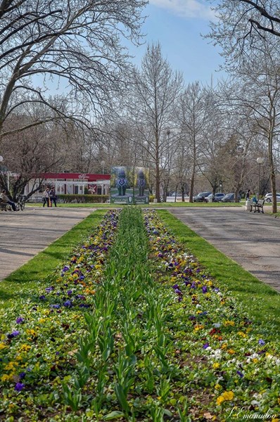 С. Емануилов е снимал алеята в началото на Парка, където пъстри цветя вече цъфтят, а самата ваза все още стои заградена и в неготов вид...