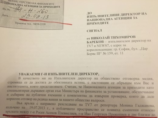 Същевременно в сигнала се посочва и че след направена справка в „Агенция по вписванията“ е видно, че от 2010 година бивша секретарка на Иво Прокопиев на име Десислава Недкова представлява кипърските "Столбърг" и "Уиклеф". Уточнено е също, че Недкова е вписана и като управител на компанията "Ева Пропъртис", която пък е еднолична собственост на "Столбърг".