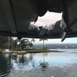 При поредното изригване вулканът изхвърли парчета скала във въздуха и едно от тях е пробило покрива на корабчето.