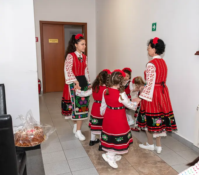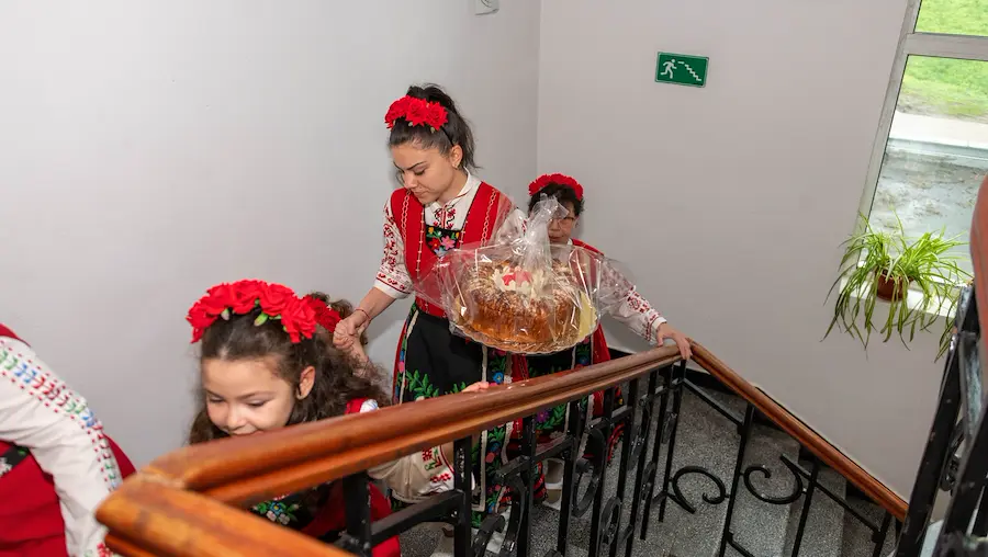С традиционни песни и наричания момичетата пожелаха здраве и берекет на служителите. Посещението им идва след гостуването на друга група деца от общинския център, които също са лазарували в институцията по-рано през седмицата.